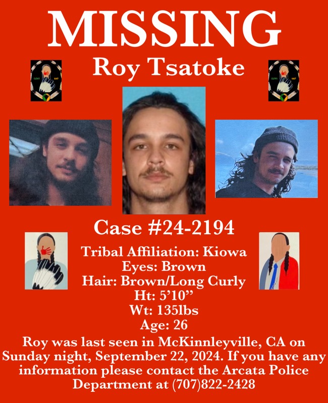 - Roy Tsatoke went missing on September 22, 2024, from McKinleyville, California.